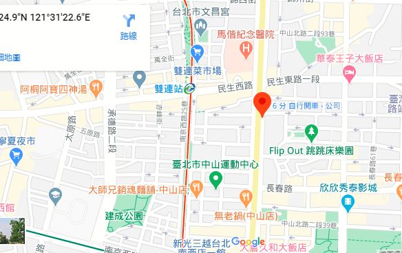 | 주소Adress | 台北市中山區中山北路二段77巷17號2F(12층 건물) |