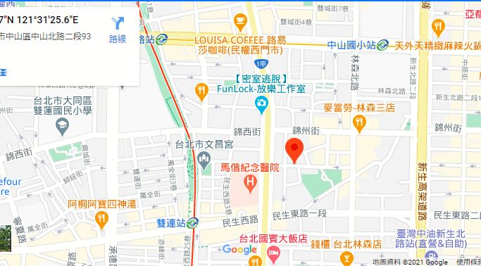 | 주소Adress | 台北市中山區中山北路二段93巷2F(12층 건물) |