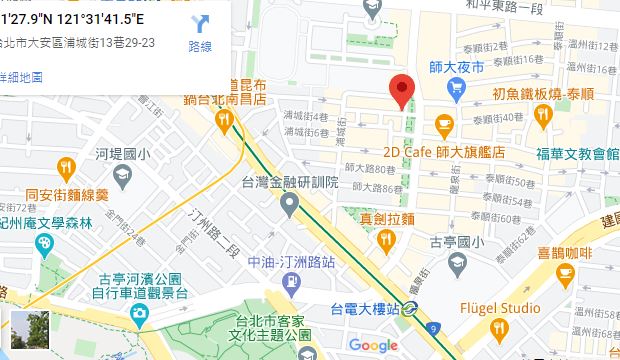 | 주소Adress | 台北市大安區師大路8F‐6(9층 건물) |