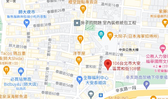 | 주소Adress | 台北市大安區雲和街108號4F-A室(5층 건물) |