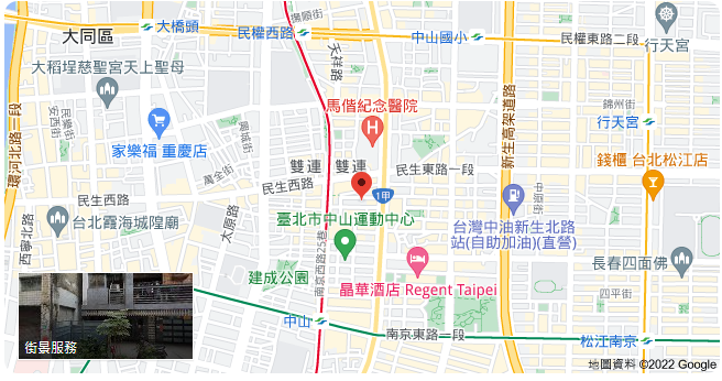 | 주변 시설Near tourist spot | 중산 상가 구역・씬씬백화점・린썬베이루 저팬타운・중산, 솽롄 전통 시장 등 |