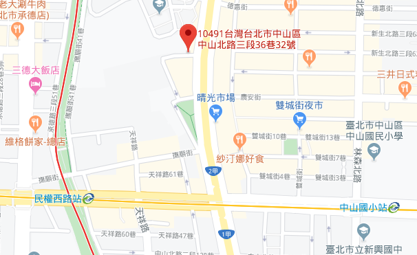 | 주소Adress | 台北市中山區中山北路三段36巷32號3F(7층 건물) |