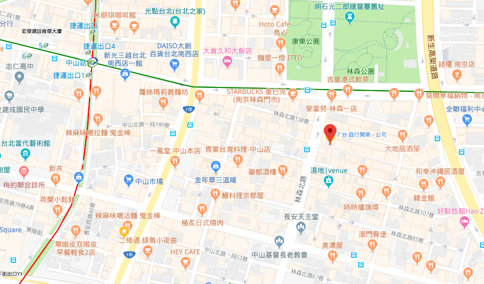 | 주소Adress | 台北市中山區林森北路133巷5號 3F (3층 건물) |