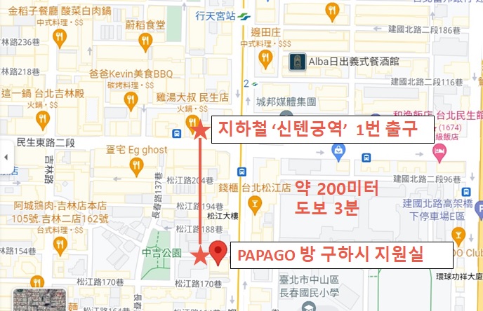 MRT '신톈궁역' 1번 출구에서 나오세요. |