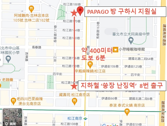MRT '쑹장 난징역' 8번 출구에서 나오세요. |