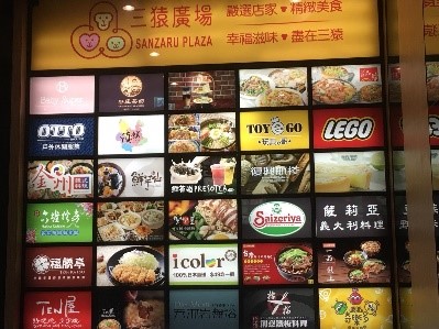 そんなわけで、三猿の中とは一変、お食事処もローカルになります。牛肉面に水餃子、台湾風ステーキなどなど。マッサージ屋さんも、先ほどの岩盤浴とはちょっと違いますね。でも、街ブラをしていると、たまにあっというお店に出会えたりもしますよ。下真ん中の写真は、「コイコイ洋食屋」という日本の洋食屋さん。また、三猿には飽きたという方には、駅前から「Global Mall」までの無料シャトルバスも出ています。ここに行けば、三猿とは違った食事を楽しむことが出来ますし、洋服屋さんも豊富です。映画館もありますよ!