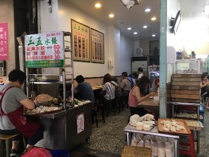 솽롄은 숨겨져 있는 맛집도 많습니다. 사진 왼쪽의 ’三五餃子’는 물만두의 맛집입니다. 그리고 망고 빙수를 파는 ‘冰讚’도 맛있습니다.