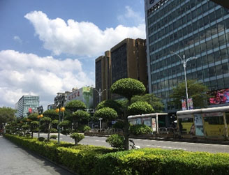 行天宮駅を出ると、目の前には、オフィスの入った高層ビルが立ち並びます。街並みは整然としていて、とっても居心地がいいです。本エリアの中心となるのは、「松江路」と「民権東路」です。どちらも台北でとっても有名な幹線道路になります。日系企業や、外資の銀行なども、集まっており、インターナショナルな雰囲気も感じさせる街ですね。