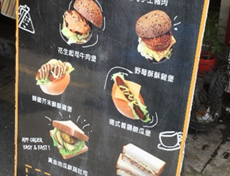 このエリアは、日本人観光客が多いのも特徴です。パッケージツアーで使われるビジネスホテルが点在しており、日本語のメニューのおいてあるお店も多いです!中国語が出来なくても安心ですね。日本食店も多く、写真はおなじみの大戸屋とモスバーガーが並んでいます。