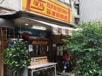 このエリアのもう1つの特徴は、外国人労働者が多いこと。フィリピンやベトナム、インドネシアなど東南アジアからの出稼ぎ労働者が中心で、そのため東南アジアの食品を扱かうお店やレストランがたくさんあります。写真は左から、フィリピン料理店、ベトナムフォーの屋台、東南アジア系の商品を集めたコンビニです。