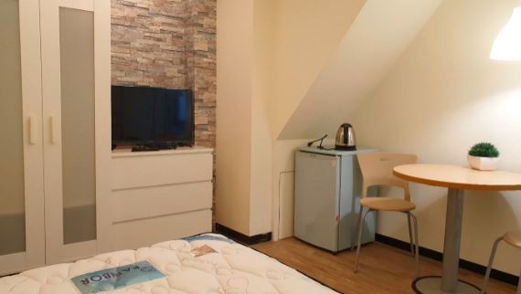 | 설비Facilities | 침대・의자・책상・옷장・에어컨・TV・냉장고・세탁기(공용) 등 |