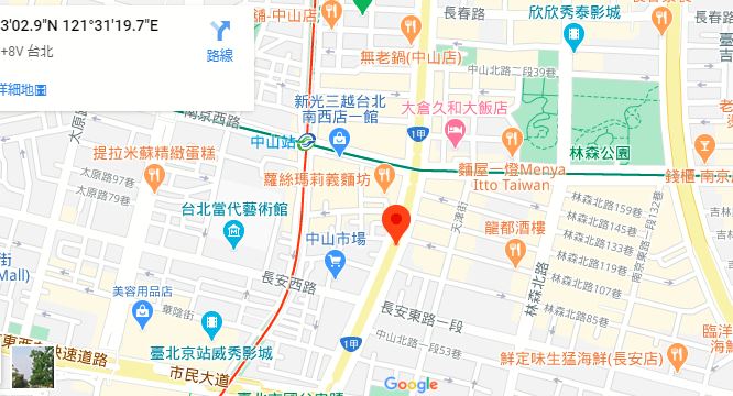 | 주소Adress | 台北市中山區長安西路12號4F(12층 건물) |