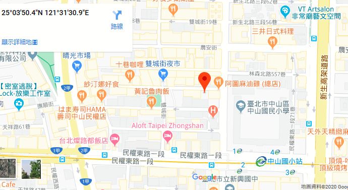 | 주소Adress | 台北市中山區雙城街13巷22號2F(11층건물) |
