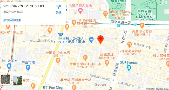 | 주소Adress | 台北市中山區中山北路一段135巷26號2F(3층 건물) |