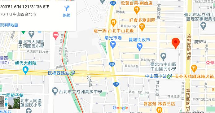 | 주소Adress | 台北市中山區新生北路三段5F(12층건물) |