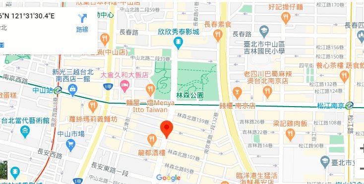 | 주소Adress | 台北市中山區林森北路6F(15층 건물) |
