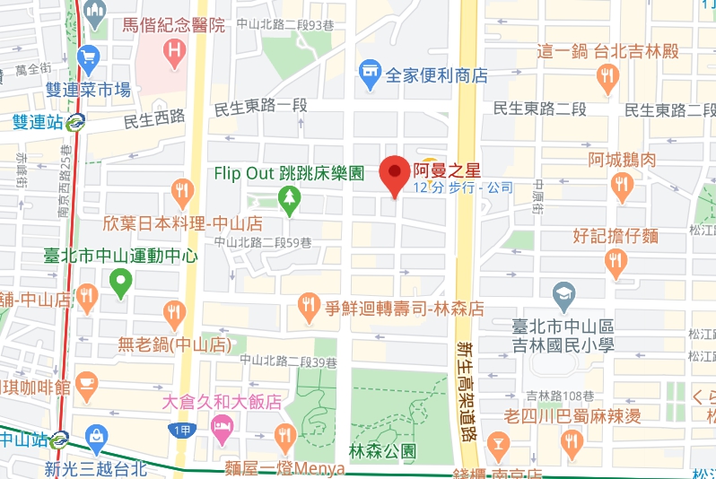| 주소Adress | 台北市中山區新生北路68巷13號4F(12층 건물) |