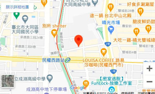 | 주소Adress | 台北市中山區撫順街7F(14층 건물) |