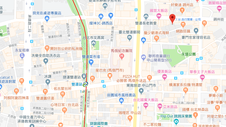 | 주변 시설Near tourist spot | 중산, 솽롄 전통 시장・린썬베이루 저팬타운・중산 상가 구역 등 |