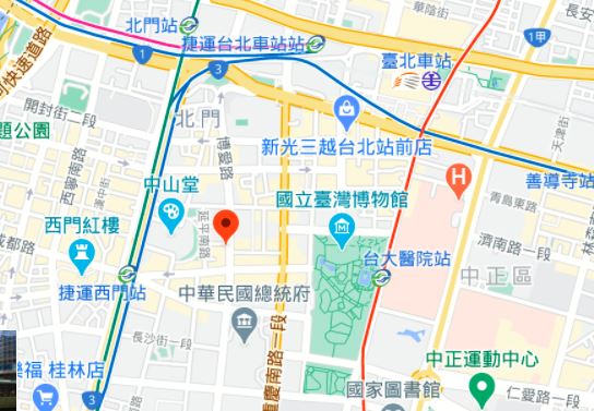 | 주소Adress | 台北市中正區博愛路5F(5층건물) |