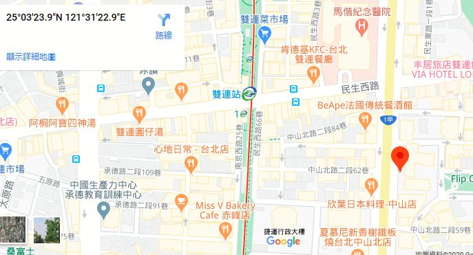 | 住所Adress | 台北市中山區中山北路二段65巷6F(14階建て) |