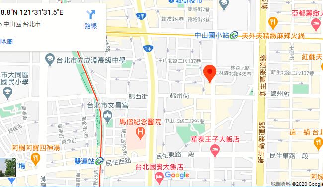 | 住所Adress | 台北市中山區林森北路4F(15층 건물) |
