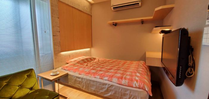 ※사진은 더블 침대이지만, 공간을 넓게 사용하도록 싱글 침대로 교체했습니다.