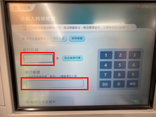 2. 여기서 입금처 계좌 정보를 입력합니다. 화면상의 「銀行代碼」은 금융기관 코드, 아래의 「銀行帳號」는 계좌번호입니다. 은행 번호를 모를 경우, 옆에 있는 「按此查詢代碼」에서 금융기관 코드 검색이 가능합니다.