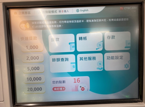 편의점에 따라 다양한 은행의 ATM이 설치되어 있는데, 기기가 제일 많은 건, 세븐일레븐에 있는 [中國信託銀行중국신탁은행]의ATM입니다. 이번에도 중국신탁은행을 예로 들어 설명을 해드리겠습니다. 참고로 훼미리마트는 「國泰世華銀行케세이유나이티드」이나 「台新銀行타이신국제은행」의 ATM이 설치되어 있는 경우가 많은 것 같습니다.