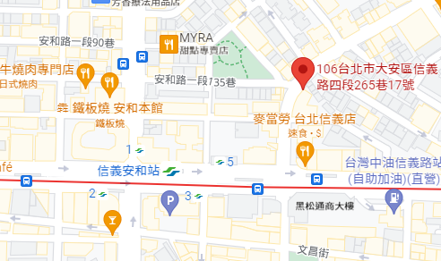 | 주소Adress | 台北市大安區信義路四段265巷17號7F (13층 건물) |