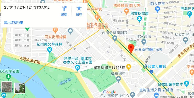 | 지하철 역Nearest station | 쑹산-신뎬선 '대만 전력공사 빌딩역'에서 도보 2분 |