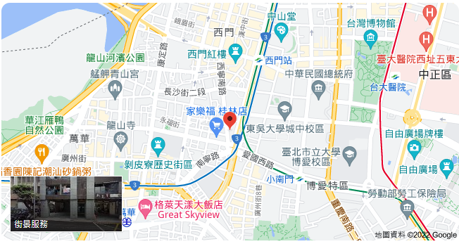 | 주소Adress | 台北市萬華區西寧南路307號5F(13층 건물) |