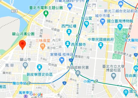 | 주소Adress | 台北市萬華區貴陽街二段220號3F(5층 건물) |