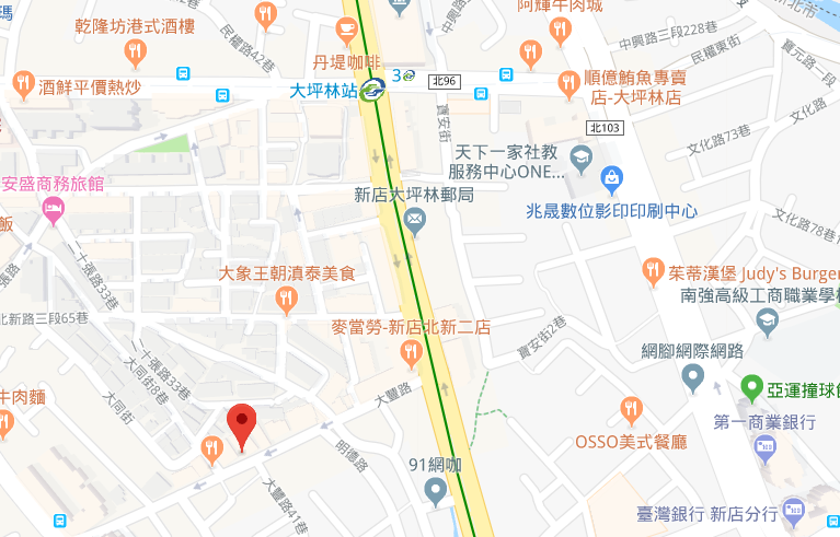 | 주소Adress | 新北市新店區大豐路42號3F(4층 건물) |