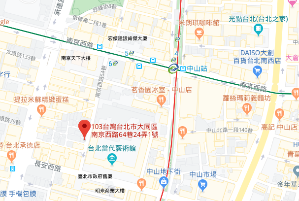 | 주소Adress | 台北市大同區南京西路64巷24弄1號4F(6층 건물) |