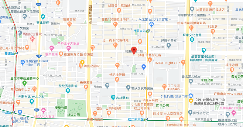 | 주소Adress | 台北市中山區松江路204巷2F (6층 건물) |