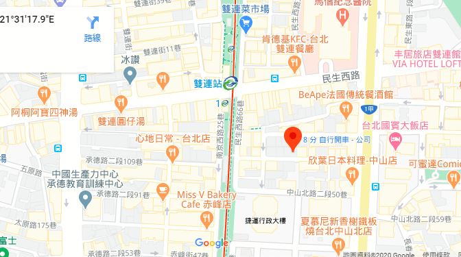 | 주소Adress | 台北市中山區中山北路二段62巷2F(4층건물) |