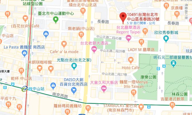 | 주소Adress | 台北市中山區長春路20號5F (10층 건물) |