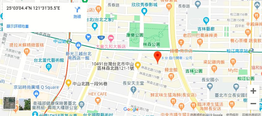 | 주소Adress | 台北市中山區林森北路145巷2F(4층 건물) |