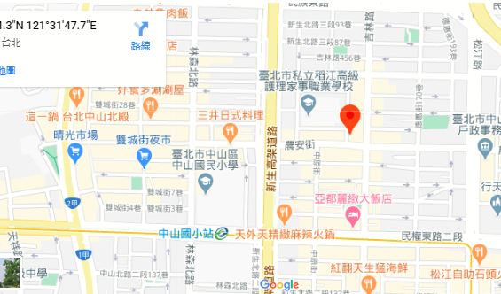 | 주소Adress | 台北市中山區農安街125巷4F(5층건물) |