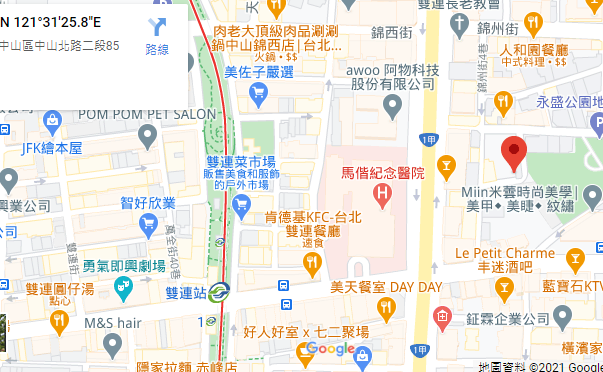 | 주변 시설Near tourist spot | 중산 상가 구역・씬씬백화점・린썬베이루 저팬타운・중산, 솽롄 전통 시장 등 |