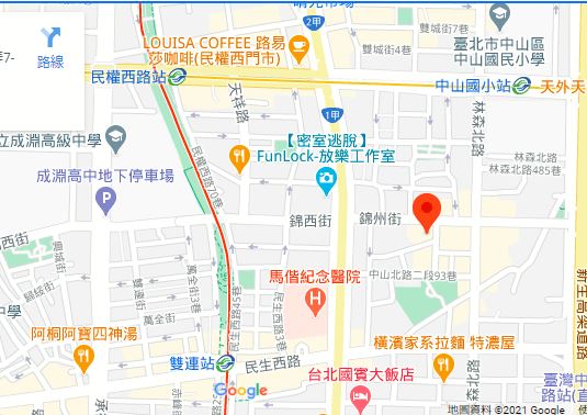 | 주소Adress | 台北市中山區林森北路458號6F(13층 건물) |