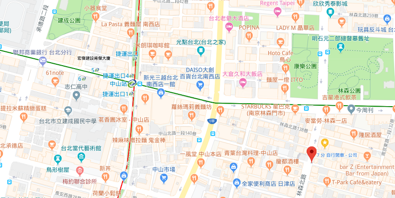 | 주소Adress | 台北市中山區林森北路121號7F (15층 건물) |