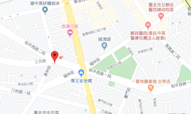 | 주소Adress | 台北市中正區和平西路一段170號4F(12층 건물) |