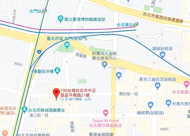 | 주소Adress | 台北市中正區延平南路21號5F (7층 건물) |