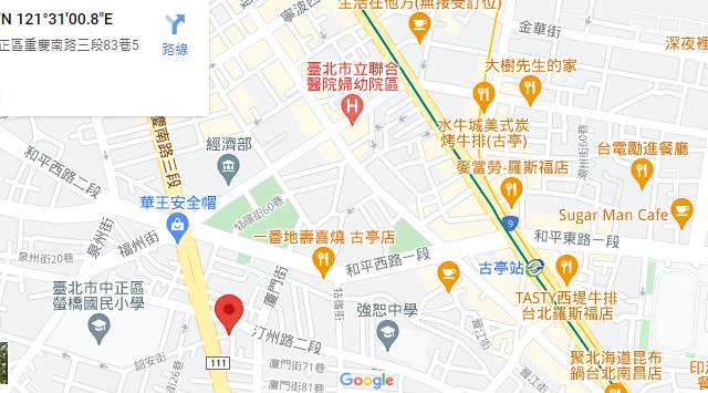 | 주소Adress | 台北市中正區重慶南路三段83巷3F(5층 건물) |