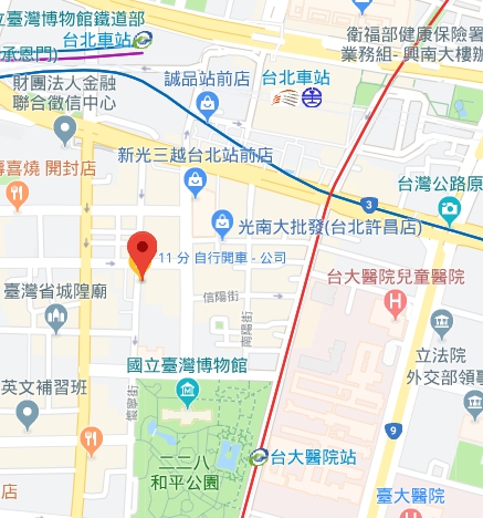 | 지하철 역Nearest station | 단수이-신이선・반난선・공항 지에윈(타오위안 공항 첩운) '타이베이역'에서 도보 5분 |