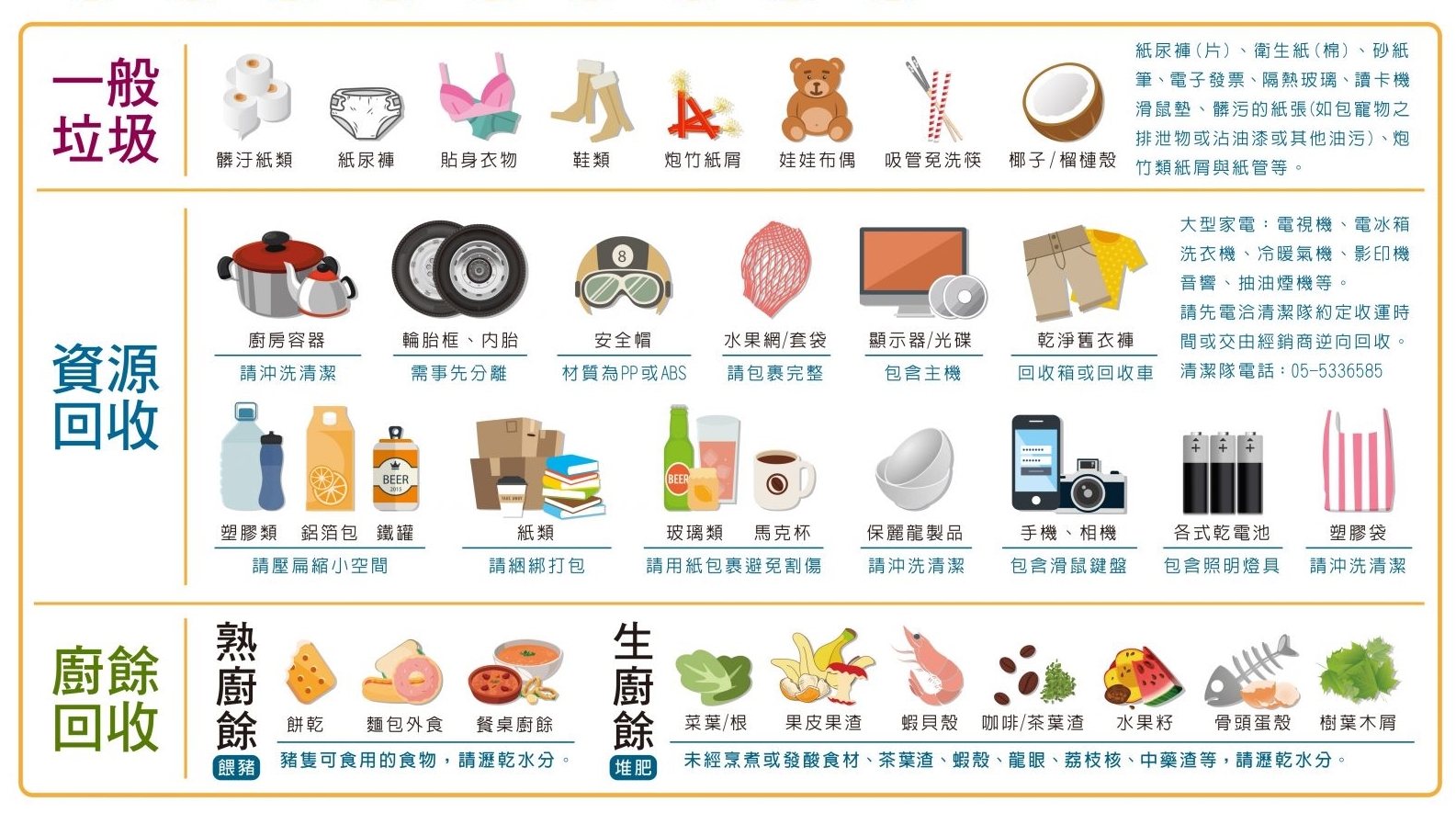 위의 일러스트에서 알 수 있듯이 대만에서는 쓰레기를 3가지 종류로 나눠서 버립니다. 너무 상세하게 쓰여 있기 때문에 실제로 여러분에게 필요한 부분만을 간추려서 한국어로 요약하자면 아래와 같은 내용이 됩니다.