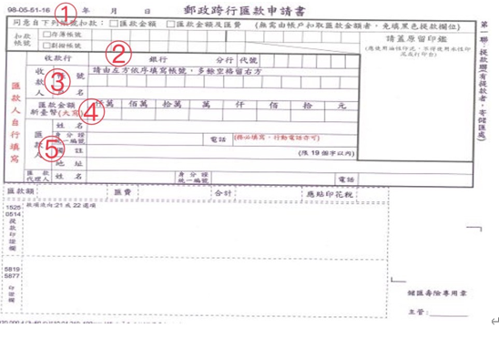 ⑤匯款人 (お金を振り込む本人についての情報を記入します)