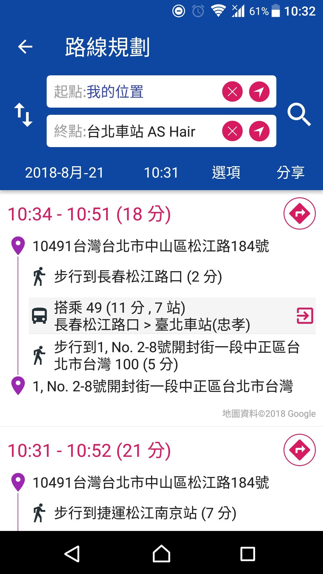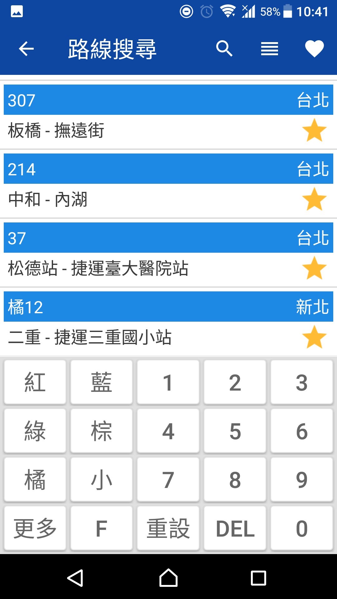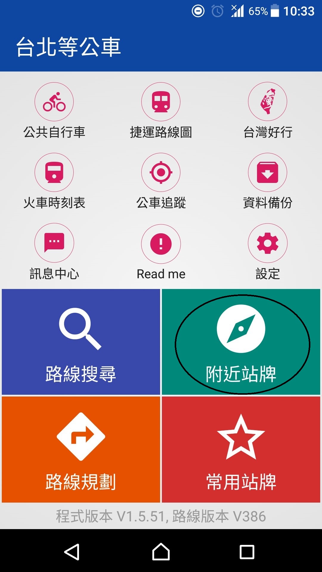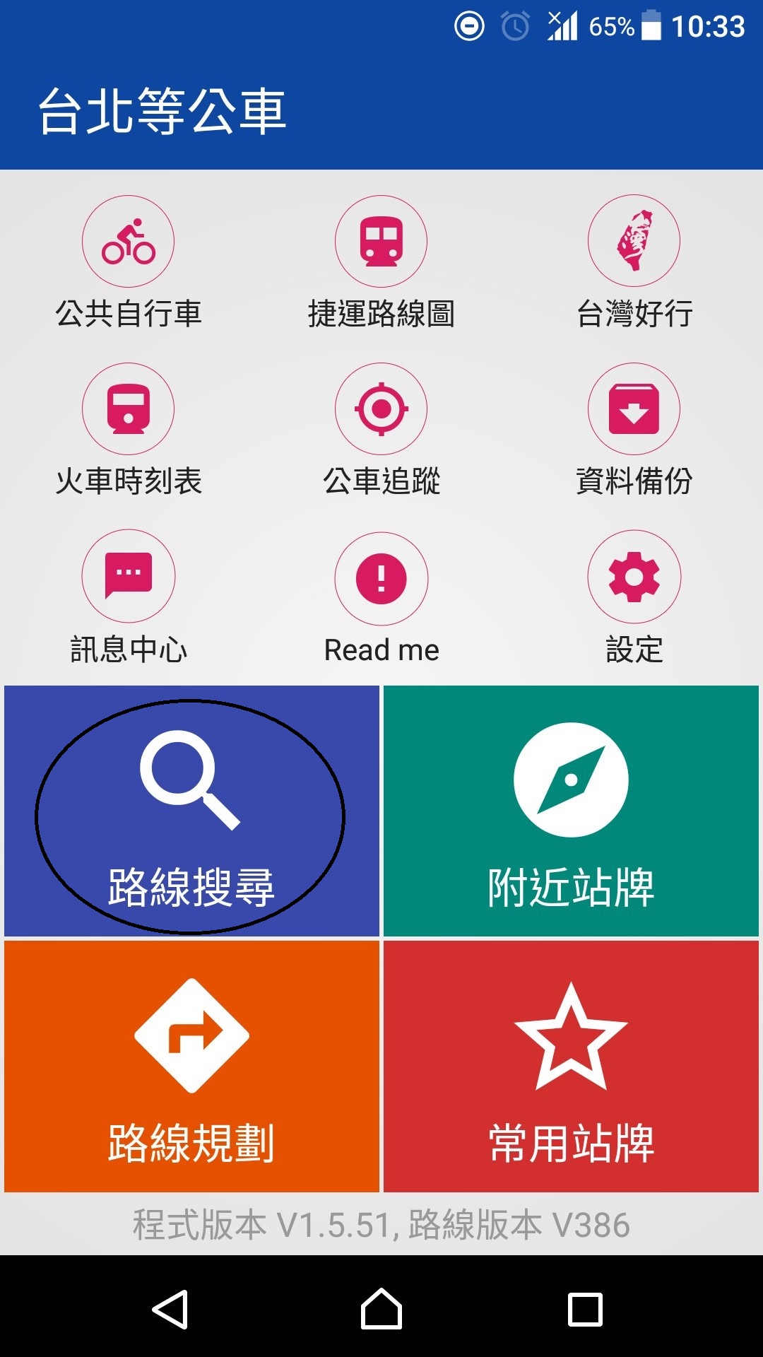 基本的に使うのは、青の「路線搜尋」、緑の「附近站牌」、オレンジの「路線規劃」に3つです。外国人が、使うのは、青とオレンジが中心になるかと思います。